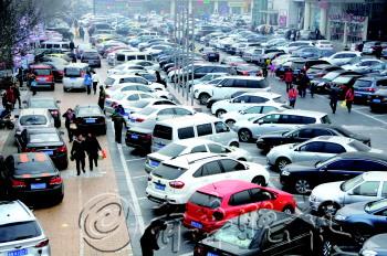 1月19日,德百大楼前,车辆挤满了停车场和周边的道路。城市又将迎来一年一度的购物大潮。 本报记者 马志勇 摄