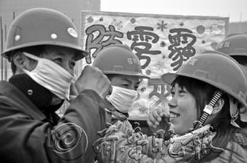17日,聊城大学生命科学学院的10名大学生爱心志愿者,利用勤工俭学换来的钱购买了80只口罩,并制作了应对雾霾天气健康知识宣传板,赶到一些建筑工地为农民工送去暖心口罩,帮助农民工应对雾霾。