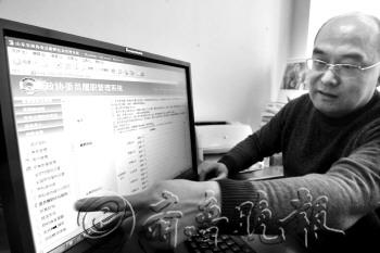 | ◥省政协机关工作人员介绍政协委员履职管理系统。