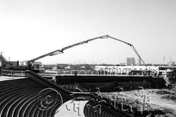 20日,岔河西大道与东风路的桥涵主体已成型,施工人员正在对连接部分进行浇筑。 本报记者 马志勇 摄