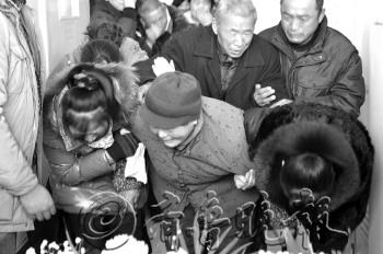 | ▲家人和亲属悲痛难抑。 本报记者 路伟 摄 |  | ◤崔山生前参加社会活动。(资料片) |  | 志愿者送别崔山。 本报记者 路伟 摄 |