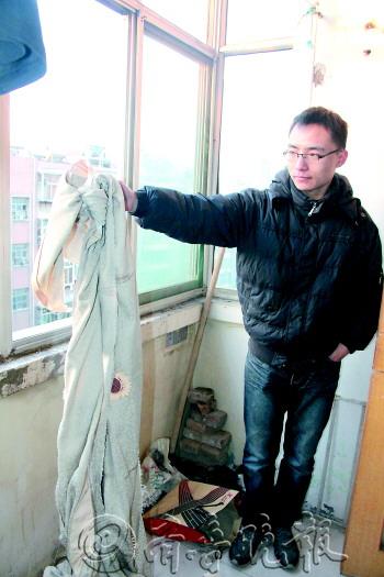看消防警示录学到的逃生常识用上了 同样住在601的小吴发现楼下着火之后,并没有选择楼梯逃生。他来到阳台,将挂在窗子上的窗帘扯下来,然后撕成了布条。“我看了看地形,我可以选择逃到旁边六楼,或者下到四楼,这条缓降绳足够长。”小吴事后说道。 在小吴忙着制作缓降绳的时候,返回房间的小刘又拿了一块湿毛巾,催促着女友赶紧穿好衣服。随后,两人用手巾捂着口鼻,放低身子从六楼逃下来。“前一段时间晚报在户外大屏上播放《消防警示录》,我们公司外面的大屏上也放过,我们都看了,视频介绍了很多逃生的方式。”小刘和小王说,这回用上了。 忙乱的场景持续的时间并不长,因为接到报警的消防队员很快赶到。由于火基本上都在客厅,消防队员很快就将火扑灭。着火房间内的三个年轻人由于忙着救火,结果身上被火燎起了一些水疱。准备缓降的小吴动身前消防队员赶到,随即安全。 灭火之后的房间,狼藉一片,地面上满是碎玻璃。房门和卧室门都已经被烧坏,门框黑漆漆的。外侧楼道内也被烟熏得乌黑,整个楼道依旧弥漫着烟味。 一个烟头,一床被子,一场突如其来的大火,让楼上的居民度过一个惊魂的清晨。