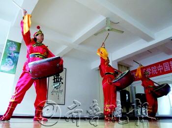 | 22日,在栖霞,表演者现场表演八卦鼓舞。 本报记者 吴江涛 摄 |