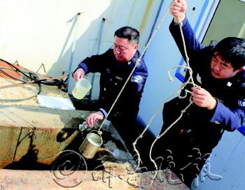 | 执法人员对一家工厂内进行污水取样。(资料片) |