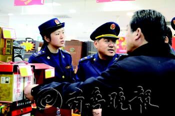本报1月22日讯(记者 许妍) 1月22日,日照市工商局、东港区工商分局在日照市区内开展了打击违法行为,净化节日市场专项行动,切实维护2014年春节期间市场秩序。行动共出动工作人员近20人,分成2队,对市区进行节日市场检查。 春节期间是人民群众消费集中、各类侵权行为高发的时期。为确保全市节日期间商品市场秩序平稳,保护人民群众生命财产安全,切实维护消费者的合法权益,自1月份以来,工商系统已经出动执法人员1500余人次,执法车辆100余台次,查处违法行为60余起。 22日,记者随工商系统近20名执法人员,以临沂路为界,兵分两路检查节假日市场,分别检查了金阳市场、凌云商场、汇鑫鞭炮市场等。 本次专项整治行动以人民群众生活消费密切相关的大型零售企业、批发市场、农贸市场、专业市场等各类市场为重点对象,以商业集中区域、烟花爆竹批发零售点、制售假冒伪劣商品案件高发地等为重点区域,突出制售假冒伪劣商品、食品,虚假宣传、霸王条款、无照经营等违法行为查处;重点查处无照或超范围烟花爆竹、销售不符合国家强制性标准、标志不全、国家明令淘汰并停止销售的、以假充真、以次充好和假冒或仿冒他人注册商标的烟花爆竹以及批发企业无购销合同采购销售烟花爆竹等违法行为。