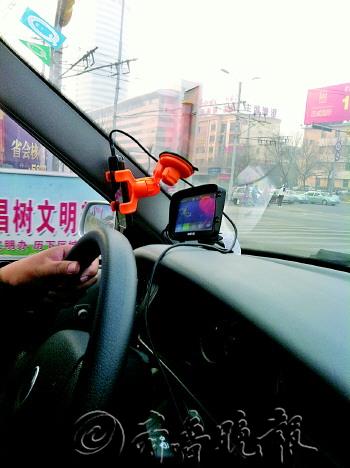 | 省城不少出租车的前挡玻璃上都可以见到这样的支架,方便司机使用打车软件。 |