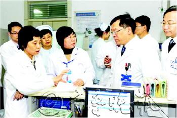 六、科教研实现多项历史性突破 <医疗管理组专家进行现场评审 2013年11月,山东省立医院副院长赵家军以在内分泌专科方面的杰出贡献,获得山东省唯一一项“山东省科学技术最高奖”,填补了医院在省科技最高奖上的历史空白。 医院血液病科王欣获得“山东省科学技术进步一等奖”;消化科张春清、骨科周东生、烧伤美容整形外科霍然分别获“山东省科学技术进步二等奖”;神经外科庞琦获“山东省自然科学二等奖”。 2013共有198篇论文被SCI收录,较去年增幅达65%:收录数量在全国医疗机构排名第27名,历史最好(2012排名第40名);影响因子前1/10的SCI期刊收录论文数全国医疗机构排名第12名 2013年5月,山东省立医院副院长陈子江、赵家军被推荐为中国科学院院士候选人;韩波、王荣当选2013年度山东省有突出贡献的中青年专家。 2013年医院成功申报国家人力资源和社会保障部博士后科研工作站,将于2014年3月份开始招生。 科研工作的持续发力已改变过去由于科研“短板”可能造成的“木桶效应”,并将进一步促使临床和科研统筹协调、系统推进,发挥整体效应,医院综合实力稳步提高。 七、内涵发展之路谱写管理新篇章 2013年1月,山东省卫生系统首家法官工作室落户山东省立医院,工作室的设立进一步使医患纠纷的处理方式由传统的非理性到理性、再到法治过渡的不断完善。 第三方见证医患矛盾调解工作的探索获得社会各界和领导的肯定,山东省省长郭树清对此项工作给予批示。 引入第三方评价,全面、系统、科学地量化“医院服务质量”并针对性持续改进,医院美誉度不断提高。 “卫计委机关新录用公务员信访岗位锻炼基地”已成为卫计委培养锻炼干部的重要实践基地,同时,基地建设也将进一步推动医院“大信访”格局的完善和提高。 提高社会管理水平,引入法制化规范、第三方监督机制、媒体评议机制、社会协调机制、精神文明建设考核机制等,多管齐下,破解医患关系难题,构筑和谐医患关系。 三、科教园区工程进展顺利 2013年,位于经四纬九路的省立医院科教园区项目正式启动,项目规划建筑面积1.7万平方米。园区将集中建设山东省立医院全科医生临床培养基地项目、山东省临床医学研究院各研究所、中心实验室、院士工作站、图书馆、临床技能培训中心、组织样本库等。 科教园区将与老院区规划一起,在济南西部城区着力打造出集医疗、教学、科研、培训、产业一体化的新型医学高地,凸显西部医疗城。 科教园区项目进一步对医院的中长期战略明确定位,使医院从以人力投入置换社会效益为主的“量态”阶段,向以“医教研结构优化、知识成果转化、卫生产业升级”为内涵的“质态”阶段转变。 医院连续三年获评“改革创新医院”。 秦成勇院长于2013年荣获卫计委“改革创新人物”称号。 创新以畅通言路、倾听群众呼声为宗旨的“四院机制”,发挥了不可替代的作用。 进行查摆问题,持续改进,全面提升医院医疗、护理、行政、党群管理水平的行政效能提升、考核机制形成。 预约诊疗模式的创新开展为患者提供了更加快速便捷的诊疗体验。 重点向“高风险、劳动强度大的临床一线倾斜”的绩效分配方式成为全省分配改革的示范典型。 安全视频监控系统智能化升级改造,加强了科技防范,夯实了我院“平安医院”建设的基础。 卫计委全国细菌耐药监测网山东省监测中心挂靠医院,确定了医院全省细菌耐药监测的龙头地位。 患者感染信息全方位、系统化科学监控,漏报率趋近于零。 保洁服务、集中配送及监管机制和模式的创新探索,开创了物业社会化管理新途径。 “规模式”发展和“内涵式”建设的协调统一已成为医院发展的核心驱动力。既做大做强,也做精做细,着力打造精细化、科学化、标准化、规范化的管理制高点,前瞻性创新思维被运用到医院管理的各个细节。