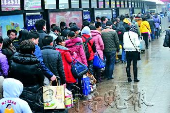 | ◥6日,济南站出口,数百乘客在排队打车。降雪加上返程高峰,使得打车难再现。