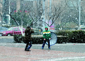 本报记者 韩逸 摄 |  | 9日,省城市民在雪中自拍。 本报记者 左庆 摄 |
