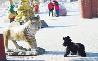 时间:2014年2月5日 自述:广场上,一只小狗对着一个木偶老虎狂吠不已,引来了不少路人围观。 点评:真是虎落平阳犬也欺。