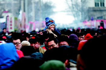 | 青岛萝卜·元宵·糖球会上,一位小朋友“你挤你的,我吃我的”。 |