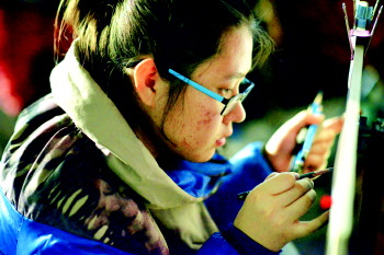 | 一名考生聚精会神地进行素描考试。 本报记者 陈文进 摄 |