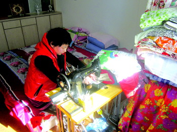 陆香果现在最大的心愿就是把家里的布加工成四件套卖出去,补贴家用。 本报记者 曲彦霖 摄