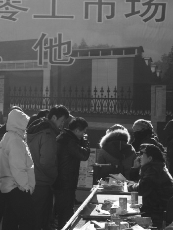 | 10日,青岛零工市场里人头攒动,每一个招聘台前都有咨询的人,但真正符合招聘需求的工人并不多。 吕璐 摄 |