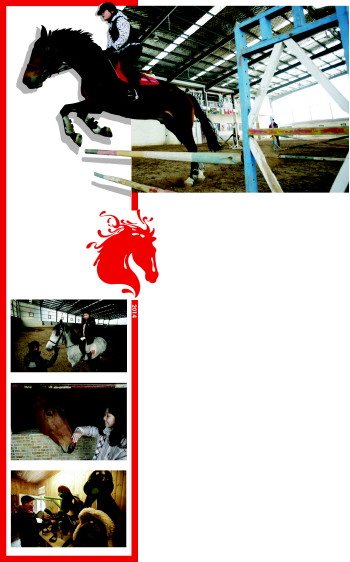 马背上翻越场地障碍的小学员英姿飒爽。 骑在高高的马背上,小学员们多少有点紧张。 小学员跟马儿的关系很亲密。 俱乐部为学员们准备了专业的马具。 文/本报记者 陈之焕 片/本报记者 张晓鹏 人中吕布,马中赤兔,神秘的赤兔马和汗血宝马大家都耳熟能详,但是人们在现实中所见的马却少之又少。马年伊始,很多人争相走进马场、马术俱乐部,体验马文化。本报记者走进青岛马术俱乐部,带你一睹世界名马的风采,了解马的习性与故事。 春节500余名游客练“马术” 随着马年的到来,人们对马越来越关注,无论是动物园的马术表演还是骑马场的骑马练习,都吸引着游客的到来。而马也因为千里马、赤兔马、汗血宝马等传说,被赋予勇猛忠诚的象征,相关艺术品也备受欢迎。 “刚过完春节,就带着孩子一起来骑马了,感受马年的文化,了解马这种动物。”8日,市民李女士和孩子们来到青岛凤凰马术俱乐部练习骑马,她带了很多胡萝卜来喂马,让孩子们一起来了解马这种动物,感受一下新年气氛。 “整个春节假期,我们这里的游客数量增加了不少,很多散客前来练习骑马。”青岛凤凰马术俱乐部工作人员告诉记者,春节期间,整个马场接待了500余名游客,现在还有不少市民打电话前来咨询,要练习马术,与马亲近。10日,记者从青岛市其它马场了解到,受马年的影响,整个春节期间前来马场的游客不断增加,数量是往年的数倍。 数十种名马青岛安家 我国是世界上养马历史最悠久的国家之一,也是马文化比较发达的国家之一。马一直被作为人类的交通工具,然而随着交通工具的进步,现在人们只有在马术俱乐部、马场等地方才能见到真马。 据了解,青岛凤凰马术俱乐部有来自德国、荷兰、西班牙、法国等十几个国家的76匹马。其中最为名贵的是一匹名为“香奈儿”的德国霍士丹名马,价值200多万元,这匹马黑白色花纹均匀,体态高大轻盈,整体协调,给人一种优雅的感觉。其他的马虽然没有“香奈儿”价值高,但也都是名马,价值不菲。这些马中个头最高的肩高有1.7米,矮的迷你马肩高只有1.16米。迷你马体型较小,“发型”也很酷,萌态可掬,受到很多人的喜爱。 聪明小马个性强 马是个性很强的动物,外表显得很温顺,很安静,但与人接触时有苟刻的条件,很难征服,一旦被征服又很忠诚。因此,马往往被称为最具贵族气质、绅士风度的生灵——宁静的内心、高贵潇洒的气质和勇于献身的精神。 “很‘绅士’,也很难接近,需要长时间建立感情。”27岁的骑手李中炎告诉记者,平时这些马总是安安静静的,跟人有一定的距离感。“就拿‘香奈儿’来说,一开始它就是静静地看着我,它眼睛受伤后我照顾了它一段时间,它才开始对我友好。” 马的视野可以达到330度,而两眼视线的重叠部分只有30度,看东西立体感很差,不及食肉动物的三分之一,因此马的视力很差。马靠嗅觉可以辨别空气中的水汽,从而找到几里以外的水源。马的休息和睡眠时间很短,成年马平均一昼夜睡眠约6小时左右。深睡只用2小时,多在破晓之前。一般公马和骟马主要是站立睡眠,母马和幼驹卧倒睡眠。马的寿命一般为40年,超过三岁时才能被骑驯。