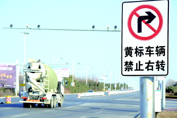 图为2月10日,市区山海路路段,黄标车禁行的指示牌已经悬挂好了。