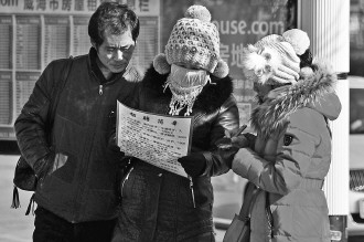 10日,在威海汽车站出站口,几位负责招工的中介人员在为务工者介绍工作。其中一位78岁的徐先生介绍,他从初六就来到车站附近帮中介找工人,从中收取辛苦费。“6天招到5个人,现在工厂用工缺口很大,而外来的打工者却越来越少。”