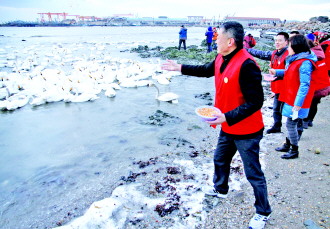 2月10日一大早,威海双举海参的全体员工来到荣成烟墩角,为数千只栖息过冬的天鹅喂玉米,并为现场百余名摄影爱好者发放纪念品。 当天上午,双举海参员工一来到烟墩角,就被这里的美景吸引住了。举目远眺,雪白的天鹅有的轻拍碧波,有的悠闲地游荡,清脆的叫声响彻云端,给游客带来了无尽的享受。在距离天鹅十几米的岸边,爱好者们拿起手中的相机,留下最美好的瞬间。在现场,环翠楼街道的义工也参与了此次活动。 如果说此时此刻的美景愉悦了每名员工的身心,那么奉献爱心则是此行的最终目的。来到现场后,员工们将早已准备好的玉米粒投放在水边,天鹅在喝水时便能发现食物。 据了解,每年数千只天鹅到荣成烟墩角栖息过冬时,双举海参的员工都会义务来喂养这群可爱的天鹅,至今已有十多个年头。 “天鹅光临威海是咱老百姓的福气,我们应该珍惜这个来之不易的机会,让来威海过冬的天鹅越来越多。”双举海参的一名负责人告诉记者,通过喂养天鹅,可以让更多的游客知道威海的环境宜人,威海环境好,盛产的海参自然好,这样的活动让游客更好的了解双举海参的营养与益处,“通过组织这场活动,也让咱的员工养成了保护环境、热爱环境的意识。” 在活动现场,双举海参的员工还为百余名在场拍摄的摄影爱好者赠送了纪念品。“早就听说双举海参品质好,今天到了现场才知道他们不仅海参美味,员工的心灵更是美丽。”来自烟台的摄影爱好者孙雯对记者说,她之前吃过双举海参,当时那种美味让她久久难忘。