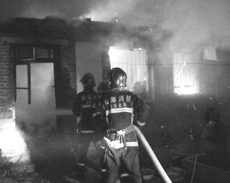 9日晚上9时许,文登市界石镇西院下村一民房着火。文登消防开发区中队派出2部消防车赶赴现场时,房顶已被烧塌。屋内无人,但房主的邻居称屋内有煤气罐。消防队员进入火场搬出煤气罐,喷水冷却。一个多小时后,火被扑灭。