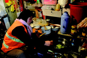本报记者 张汝树 王方凤从老家沂源来到张店从事环卫工作已经8年了,由于春节期间需要工作,今年是她8年以来第一次回家过年,她特意给孩子准备了礼物——花60元买了一件棉袄。 只舍得花60元给孩子买新衣服 “妈回来了,妈回来了。”年前,在张店从事环卫工作的王方凤,坐上从张店到沂源的客车,回到了家里,12岁的小儿子王小龙看到妈妈后难以抑制自己的兴奋劲,一个劲的叫妈。 王方凤今年52岁,老家在沂源县,为了能让家人过得好一点,8年前便来到张店独自打拼。“我丈夫得过脑血栓,干不了重活,现在就在家照顾孩子。”王方凤说,她大儿子已经毕业工作了,但工资不高,小儿子还在上学。 当初她之所来张店做环卫工作,就是因为家里的这些担子需要她挑起来,她说,家里一共才二亩多地,光靠种地收入很少,根本无法支撑日常的生活开支。“在张店从事工作,也是为了整个家庭”。 “这是我工作8年来第一次回家过年,特意给孩子买了新棉袄,不过考虑到开支,狠狠心花了60元。”王方凤说,“平常在张店工作也想孩子,但没办法,不能丢下工作”。 趁孩子不在家,才能回张店 王方凤在家只待到了初三,而这还是找人替班了,才能晚回来工作一天。“以前的时候都不熟,找不到人替我的班,也只能在张店过年,来来回回太麻烦”。 “我这次从家走,都不敢收拾行李,生怕被孩子看到。”王方凤说,她从家里离开,担心孩子不让走,是趁着孩子不在家,偷偷去坐的车,这次也不例外。 “平常我在家的时间很少,孩子比较想我,每次打电话都让我在外注意身体,很懂事”。而最让王方凤感动的是,有一次打电话从儿子口中说出的那句“我爱你”。由于长时间在外不能回家,与儿子也是聚少离多。 王女士告诉记者,他的儿子在学校成绩不是很好,这一点也让她很自责。“我在学习这方面基本没管过他,一是因为没有时间,连见上一面都困难,更别说辅导功课了;另外,我的文化程度也很低,根本没能力辅导我的孩子。” 为省钱,从家里自带白菜萝卜 10日一大早有点冷,王方凤特意戴了条围巾,又开始工作了。“我初四就开始上班了,工作量和往常一样,就是下雪这几天工作量大点,雪扫完了,这几天就打扫树叶啥的,不算累”。 在王方凤不到8平方米的“家”中,找不到一件像样的家具。其实王方凤租的房子只是一个小储藏室,“搬了三次家,最后定在这里了,虽然很简陋,但很便宜,这样就能省下更多的钱。” “能省就省,家里用钱的地方多。”记者了解到,就连王方凤的衣服和鞋子,有些都是好心人送给她的,平时吃的东西就是家里人来张店顺道带来,这样她就可以省去一部分开支。“今年也是这样,刚回来菜价肯定贵,我就从家里带来了白菜和萝卜,够正月里吃的了”。