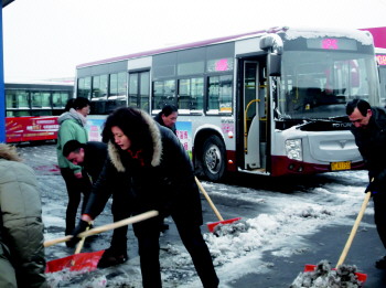 近日,淄博迎来降雪天气,大量积雪及路面结冰让道路变得难行。为此,淄博公交张店分公司立即启动预案,动员公司工作人员积极清理积雪,保障公交线路运行安全。
