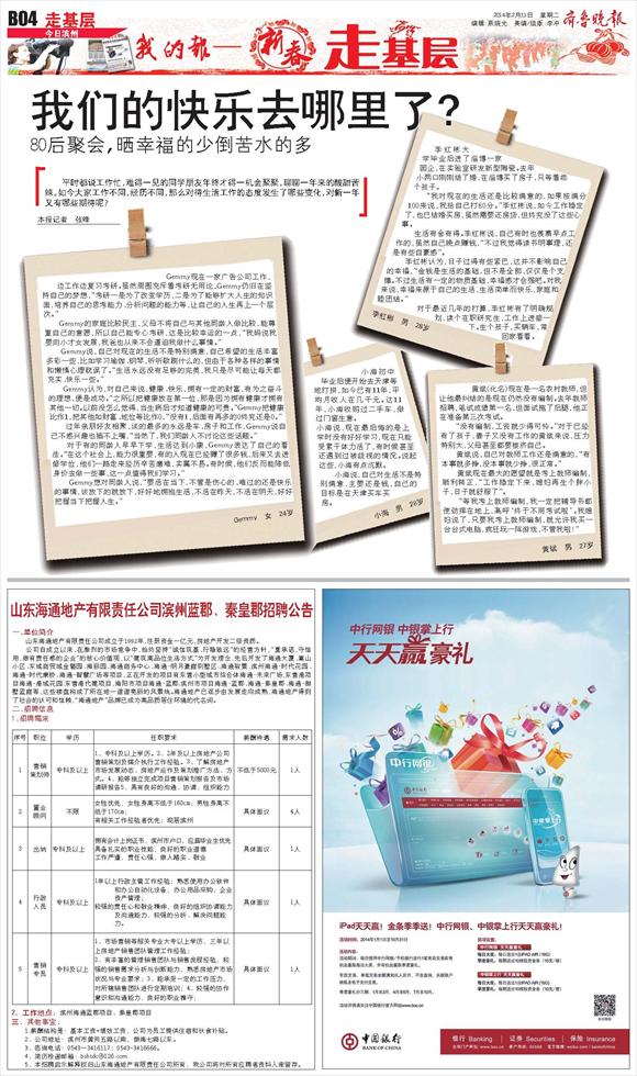 山东海通地产有限责任公司滨州蓝郡、秦皇郡招聘公告