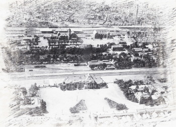 | 1928年,津浦铁路济南站(上)和胶济铁路济南站(下)航拍合影照。(图片来源:《老照片》杂志第七十五辑) |