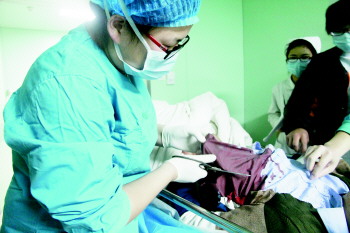 | 金保星被送到医院时,衣服被血浸透,医生将他的血衣剪开。