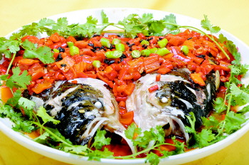 调料:味达美剁椒鱼头鲜豉油100克、盐10克、味精10克、料酒20克。