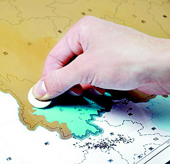 人们都说,千里之行始于足下,但在这里,精彩的旅途将在你的手指间闪回。地图的表层是一层金色涂层,用硬币轻轻一刮便呈现出缤纷的新世界——刮开的,是已经探索过的大好河山,而未刮开区域,则时刻提醒着你更多潜在的美好。地图的背面还提供了线描的中国地图,可以在上面同步记录行程和心得,再配上专门提供的足迹标签,DIY乐趣十足。就从现在开始吧,把生命花在应该体验的地方,用心投入、用心设计每趟旅行的完美记忆。