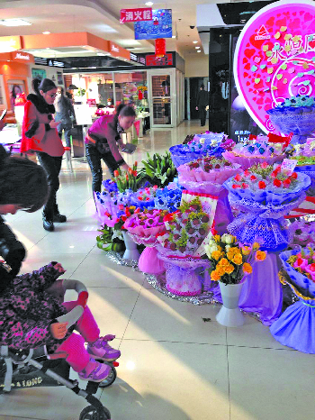 | 包装精美的鲜花价格也水涨船高。 本报记者 杜彩霞 摄 |