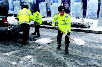 2月5日至7日,新年首场降雪不期而至,为济南新春的到来增添了无限祥瑞气氛,也给市民出行带来了诸多不便。7日清晨,天空还不时飘着雪花。在经十东路、工业南路上,城管清雪车不时经过。在舜华南路附近,保洁员们从6日晚上9点就上路清雪,忙碌到晚上12点,7日凌晨4点又早早上路,一直忙到早上7点。 为全面应对降雪天气,高新区城管局接到市城管局应急清雪准备通知后,各单位人员、车辆全部到岗到位严阵以待。此次清雪行动,高新区城管局共出动作业车辆60余次,使用新型融雪剂50吨,出动保洁员400人次。 与此同时,高新交警对辖区重点路口、路段加大巡逻密度,采取撒盐粒、撒融雪剂等措施清除积雪,并积极协调督促辖区环卫部门加大清扫频次。执勤民警不畏严寒,警容严整,冒雪疏导交通,确保辖区路面安全畅通。