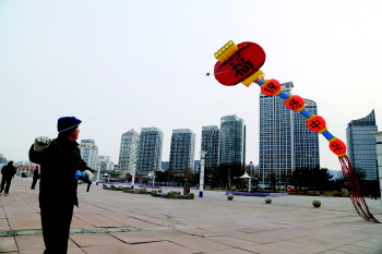 2月13日下午,75岁的王树文老人带着亲手制作的福字灯笼风筝在滨海广场放飞,迎接元宵佳节。王树文介绍,灯笼风筝由一个大灯笼和四个小灯笼组成,上面分别用丙烯写着“福”和“锦绣中华”字样,寓意国家山河大好,新的一年福气盈门。