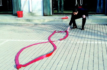 作品描述:把开门鞭炮摆成8字型,寓意开门就发财。