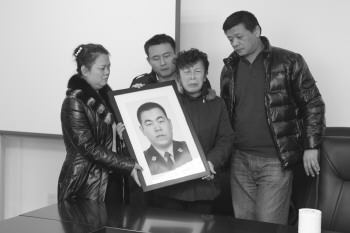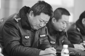 | 家人手捧周再明的遗照泣不成声。(图片由警方提供) |  | 在13日的通报会现场,同三高速公路交警大队政治协理员王坤洒泪忆战友。 本报记者 张晓鹏 摄 |