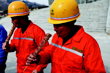 13日下午,市北区政府组织道德模范代表、环卫工人代表、城管执法人员代表及公安、交警系统部分干警到世园会,为建设者们送去了糖球、萝卜、元宵等青岛萝卜·元宵·糖球会纪念品。