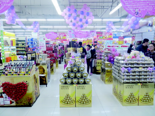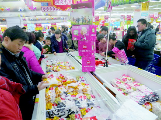 买汤圆顾客围成堆 传统节日必选食品 记者12日晚7点左右来到佳乐家超市,在大约1个小时的采访时间里,汤圆专卖区的冷冻柜旁一直围满了消费者,售货员也一直在卖力地吆喝着汤圆的各种优惠价格。记者采访发现,购买汤圆的消费者主要以家庭单位为主,一般每个家庭都会拿几袋。“元宵节嘛,你不吃元宵,怎么算过元宵节,再说了,这也是中国人的传统节日,汤圆是必须要买的。”市民杨洪志说。售货员也告诉记者,汤圆是大众消费品,也是传统节日每个家庭必备的。 顾客少并非遇冷 情侣一般单选巧克力 相比汤圆元宵的热卖,光顾巧克力的消费者要明显少些。记者在佳乐家超市三楼巧克力的销售区域看到无论从外形布置上还是巧克力盒的摆放上都非常讲究。“我们一般是情人节前一周左右开始做促销,主要以各种品牌的巧克力礼盒为主。”一销售员说。半个小时时间里,前来选购的顾客并不多,“其实总体卖得还可以,只是集中扎堆购买的少,基本都是零散过来选购。一般情侣过来,就是来买巧克力的,买完后一般不会再买汤圆。”促销员表示。 受众群体不同是主要原因 看上去,各大商超里貌似汤圆销售要比巧克力火爆,但其实在各自的受众群体中,汤圆和巧克力的销量都不错。“面对的顾客群有差异,巧克力针对的是情侣,价位也较高些。”超市费罗列巧克力销售区域的促销员表示。“元宵节更大众更传统,每个家庭都购买,实惠有意义,巧克力就是情侣过情人节买吧。”消费者小王说。 今年的元宵节和情人节双节撞在一天,这让商家也热闹了起来,一边汤圆元宵搞促销,另一边巧克力礼盒摆阵势。近日记者走访观察了多家商超,发现买汤圆的顾客要明显多于买巧克力的,这是传统节日更得人心,还是巧克力意外遇冷? 超市内巧克力和汤圆销售区域顾客人数对比明显。 本报记者 阚乐乐 韩志伟