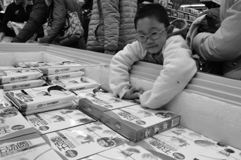 在张店华光路一家超市,一位小朋友在挑选水果味汤圆。 本报记者 王鸿哲 摄