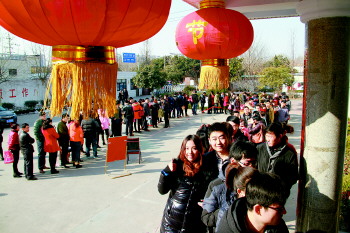 | 14日,情人节遇上元宵节,日照众多新人选择在这一天登记结婚,图为民政局大院内排起长长的队伍。 本报记者 刘涛 摄 |  | 14日,济南历下区婚姻登记处人满为患。 本报记者 周青先 摄 |  | 14日,日照一对新人领到结婚证。 本报记者 刘涛 摄 |