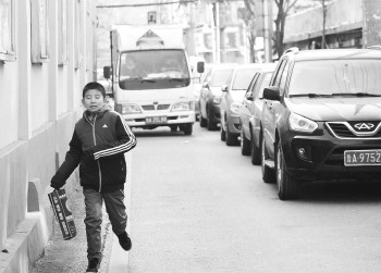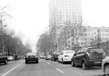 | 11日,山师二附中门口东首,见背后有车驶来,一个男孩慌忙往前跑。该路段是单行线,但随着附近小区车辆增多,许多车都停在了单行线上。 本报记者 左庆 摄 |  | 11日,在燕子山路,由于周边小区停车位不足,附近居民只好将车停在大马路上。 本报记者 左庆 摄 |