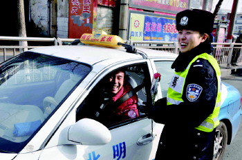 警花送祝福,鲜花赠司机