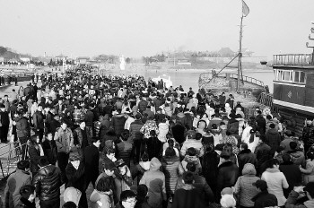 14日一早,长岛县各个海岛上的渔家人纷纷乘船渡海来到庙岛显应宫,在妈祖前上香、膜拜,祝愿新的一年和美、顺利。渔民在拜妈祖的同时,还要进行舞龙、舞狮等文艺表演,举行元宵灯会和灯谜游艺。据统计,庙会期间长岛水域共有5艘客船往复流水发船,共运送旅客约1.7万人。