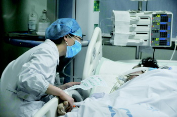 | 护士们每天都会把“病房家书”读给韩女士听。 见习记者 吕奇 摄 |