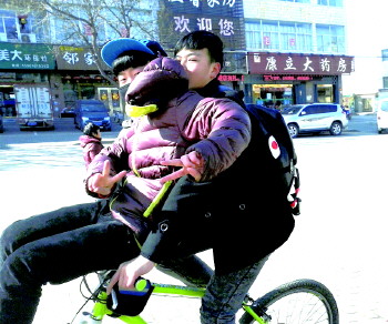 作品描述:两个人骑一辆车,真是对好兄弟,不过可得注意安全。