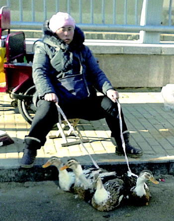 作品描述:遛狗有啥稀罕,遛鸭子压马路才更拉风,关键还是集体出动。