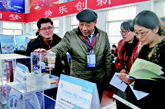 19日,第三届高区青少年科技创新大赛在高区一小开赛。此次大赛围绕“青春梦·创新梦·中国梦”主题,汇集了高区小学生、初中生的科技作品。同往届相比,今年作品数量更多,师生参与面更广,科技含量更高。图为评委们为“家用鱼缸定时喂鱼器”打分。