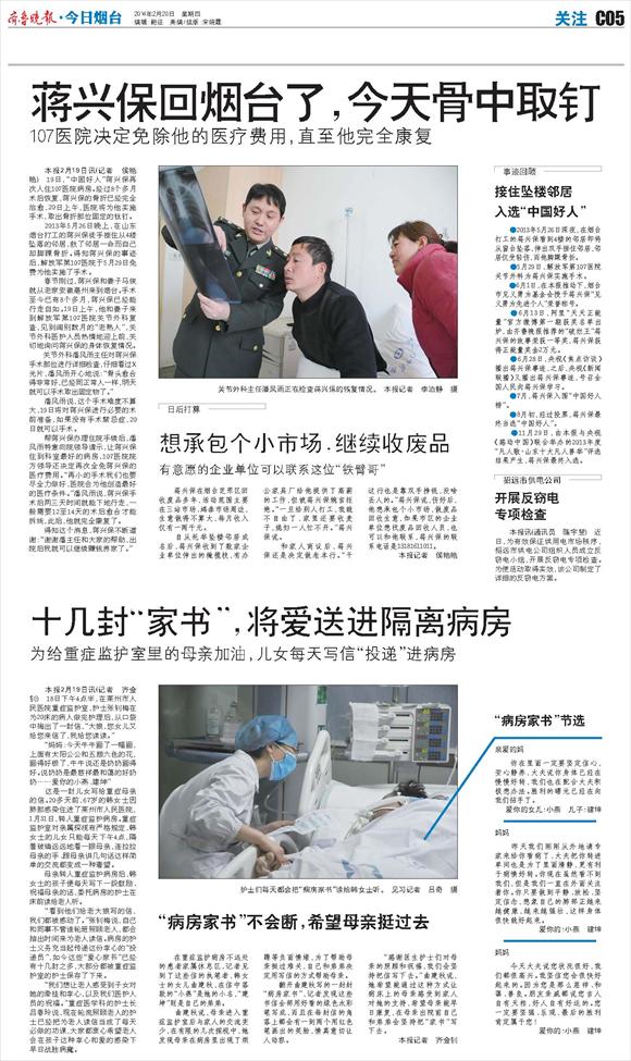 蒋兴保回烟台了,今天骨中取钉
