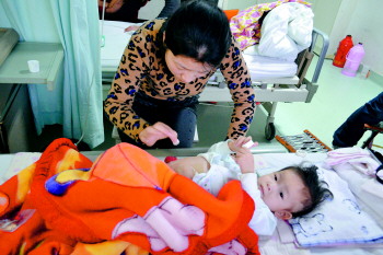 本报滨州2月21日讯(本报记者 王茜茜 见习记者 陈晓丽) 刚过完两岁生日的滨州女孩早早,又一次住进了医院。去年1月份,早早被初步诊断患有罕见疾病“巨结肠同源病”,从此父母就带着她开始了漫漫求医路。经过两次手术,花费了20多万元,家里的房子也卖了,早早的病非但没有治好,肚子反而一天天变得更大。 早早降生于滨州市一个普通工薪家庭,一家人欢欢喜喜地迎接了这个小生命的到来。然而,这样的幸福并没有持续很久,早早八个月大时,妈妈张玲玲就发现孩子不能正常排大便,也不能正常饮食。之后,家人带着早早从滨州到济南,从济南到北京,奔波了多家医院,但早早的病情仍然没有好转。 21日下午5点10分,小早早做完灌肠后,安静地依偎在妈妈怀里。刚放到病床上,小早早便挥动着手喊起来,“糖、糖。”“好、好,现在就让姨妈给你去买糖。”张玲玲安抚着早早说。“刚才做灌肠时,她喊着说疼不做,我们就哄她说给买糖吃,这才听话了些。” 听到姨妈出去买糖了,早早安静了下来。记者走上前跟早早说话,早早看了一眼却没有说话。“每次做完灌肠,她都会不开心,可能是太疼了,哭喊得也累了。”张玲玲微红着眼眶说。虽然每次灌肠时,早早都会大哭大闹,需要三四个人按住,但是每次结束后,她都会靠在妈妈怀里,眼泪汪汪地对医生说一句,“谢谢爷爷,我灌完了!”说到这里,张玲玲和早早的奶奶眼泪止不住地流。 现在,早早每天只能靠营养液、流质食物补给身体,排便基本上靠每隔一天做一次灌肠,五六包的水注入到身体里,然后再排出来,普通人都难以承受,更不用说仅仅2岁的孩子。 而每天高达700元的住院费更让这个家庭雪上加霜。从早早生病到现在,已经花去了20多万元的治疗费用,张玲玲告诉记者,“我们的房子已经卖了,现在一家三口都住在婆婆家里。” 如果您愿意帮助早早早日康复,可以和早早的妈妈张玲玲联系:15898895119。也可以拨打本报热线电话96706,或者联系本报记者王茜茜:13696307597。