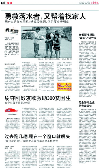 | 本报2013年8月21日A10版曾报道莱阳小伙杨道金勇救落水者。 |