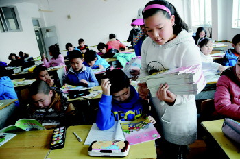 | 返校报到当天,同学们都发了新课本。 本报记者 李泊静 摄 |